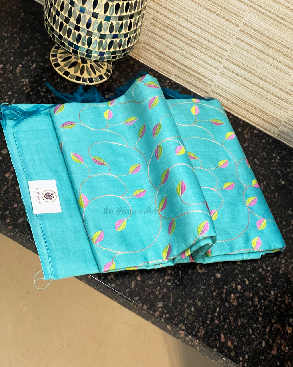 Sky blue color Bhagalpuri Pure Tussar Silk Embroidery Saree