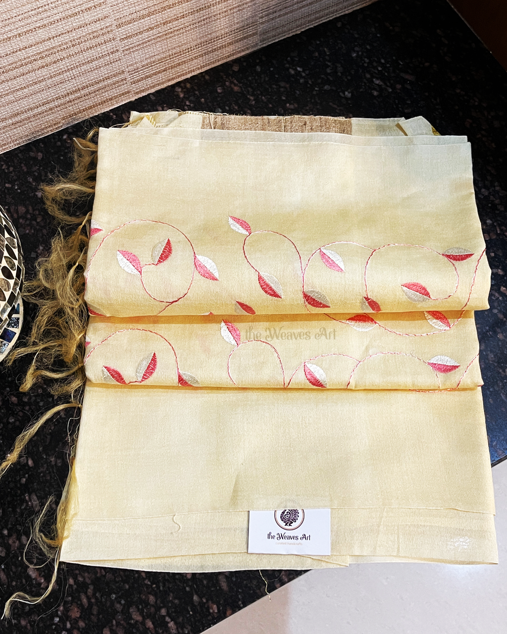 Corn Silk Color Bhagalpuri Pure Tussar Silk Embroidery Saree