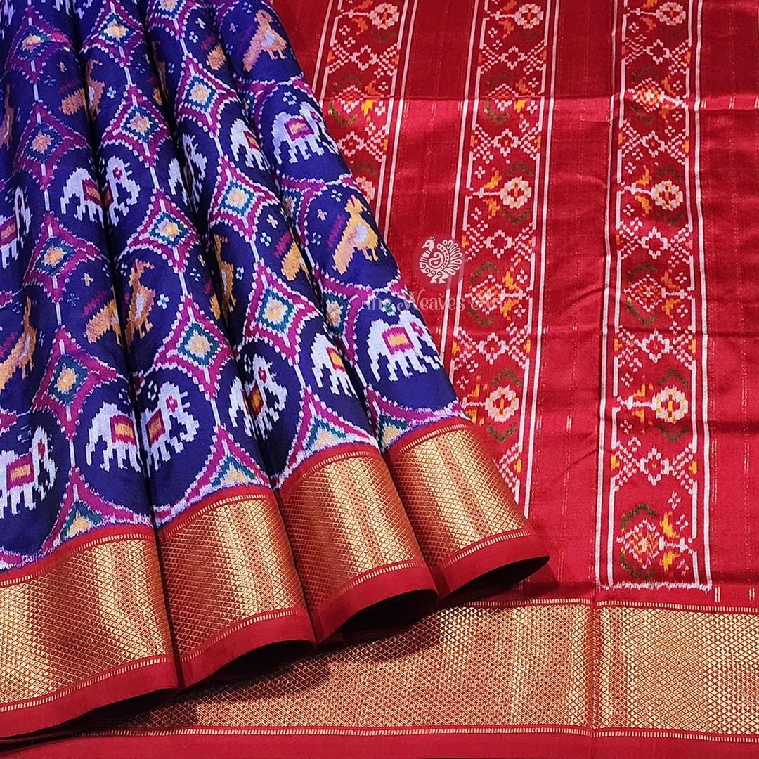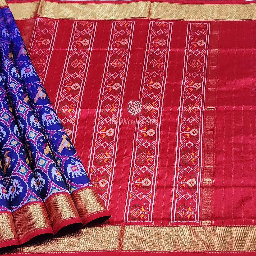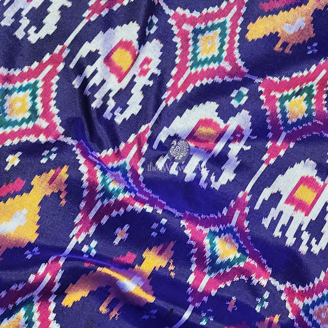 Sarisha – Midnight Blue Handloom Patola-Inspired Pochampally Single Ikat Silk Saree with Kunjar, Popat Motifs