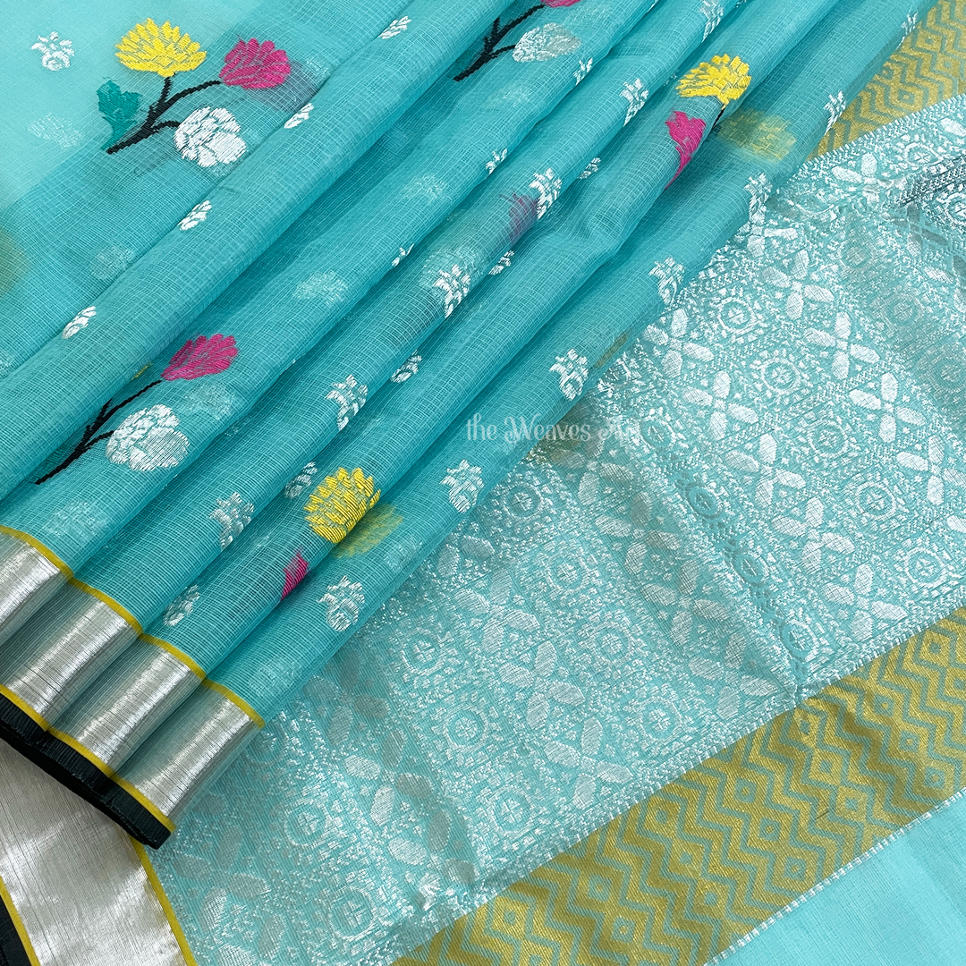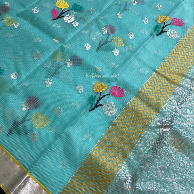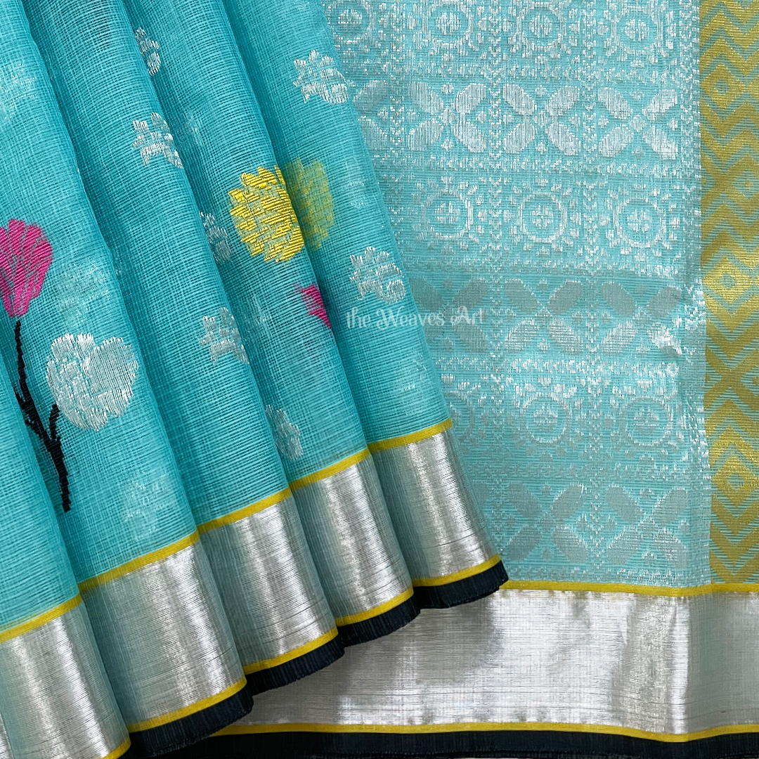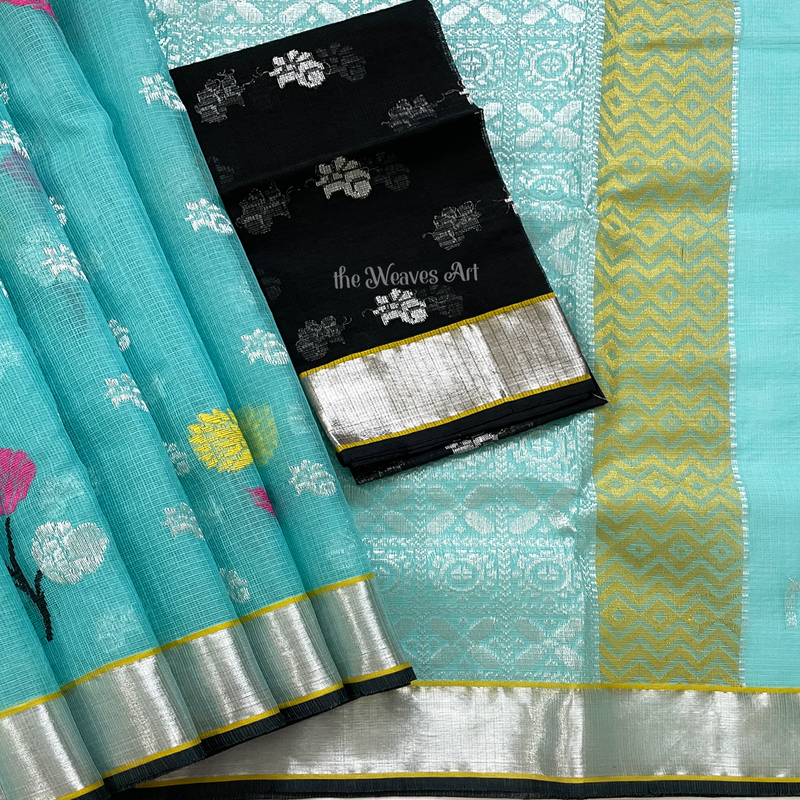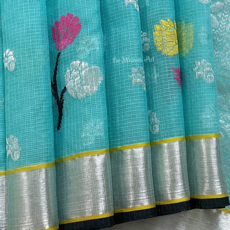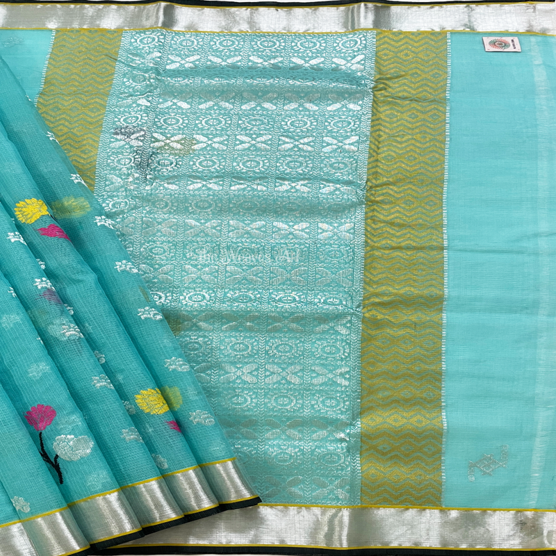 - Saree Color: Blue Turquoise with Silver Zari Kaddi Border.