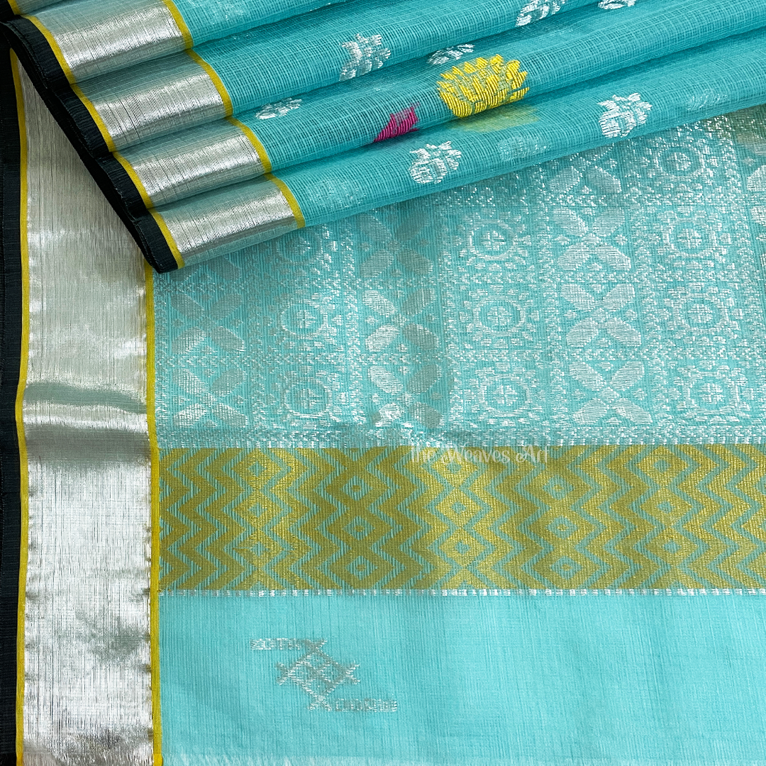 Srisha - Turquoise Blue Color Handloom Pure Zari Kota Doria Saree